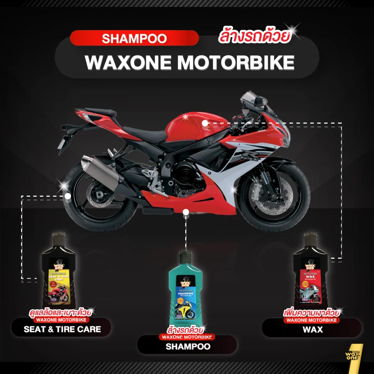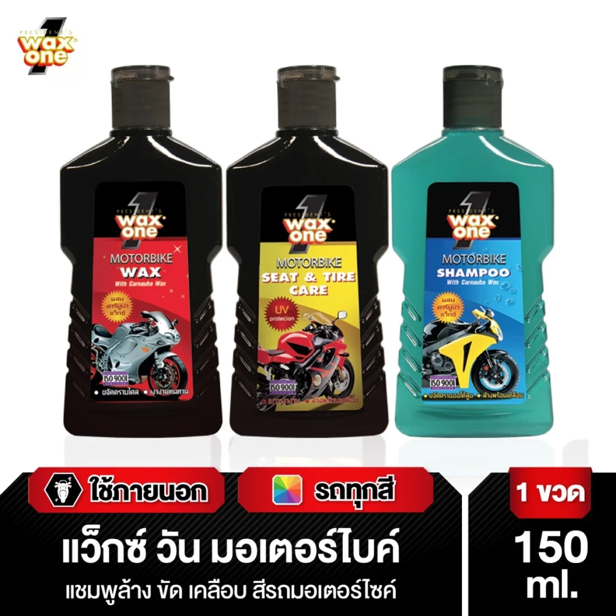 พร้อมส่ง WaxOne Motorbike series ผลิตภัณฑ์ดูแลรถมอเตอร์ไซค์ ครบ จบใน 3 ขั้นตอน ล้าง บำรุง และเคลือบ ป้องกันรังสี UV 150 ml