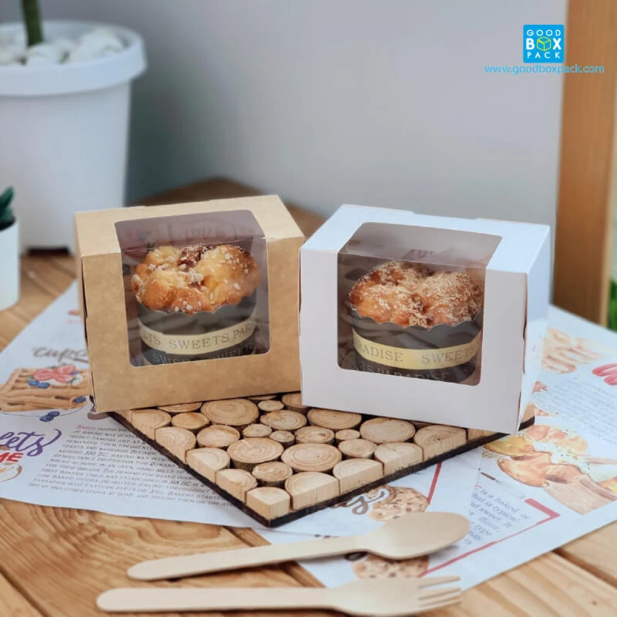 กล่องเค้ก 1 ชิ้น หน้าต่างกว้าง คราฟท์ แพ็คละ 20 ใบ ลังละ 600 ใบ ขนาด กว้าง 7.5 x ยาว 11.5 x สูง 9 ซม.