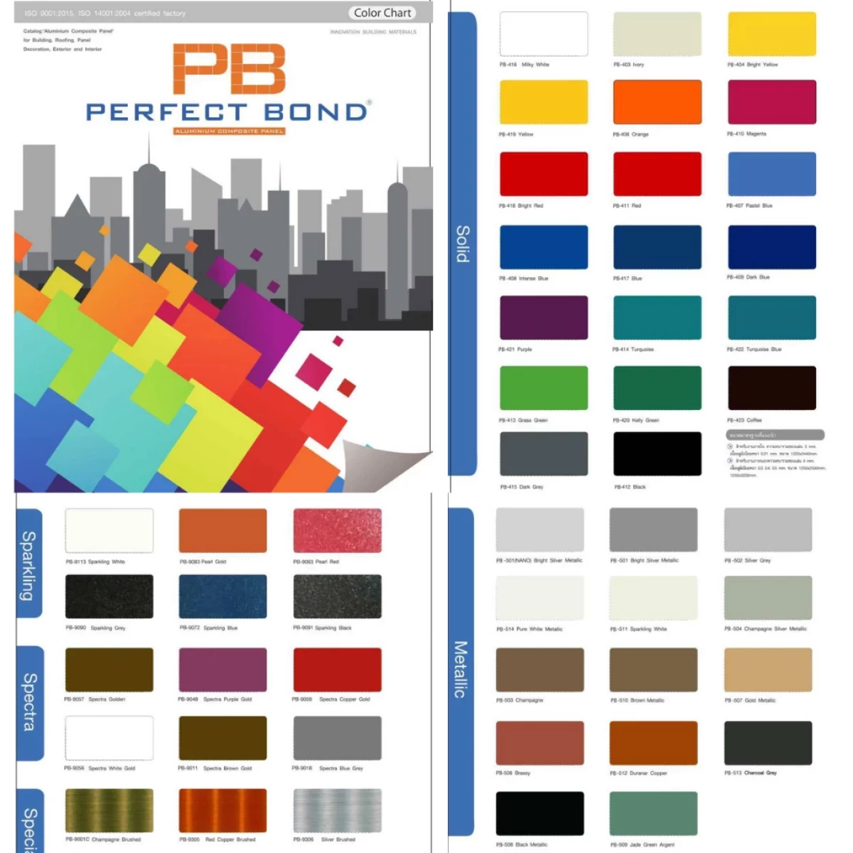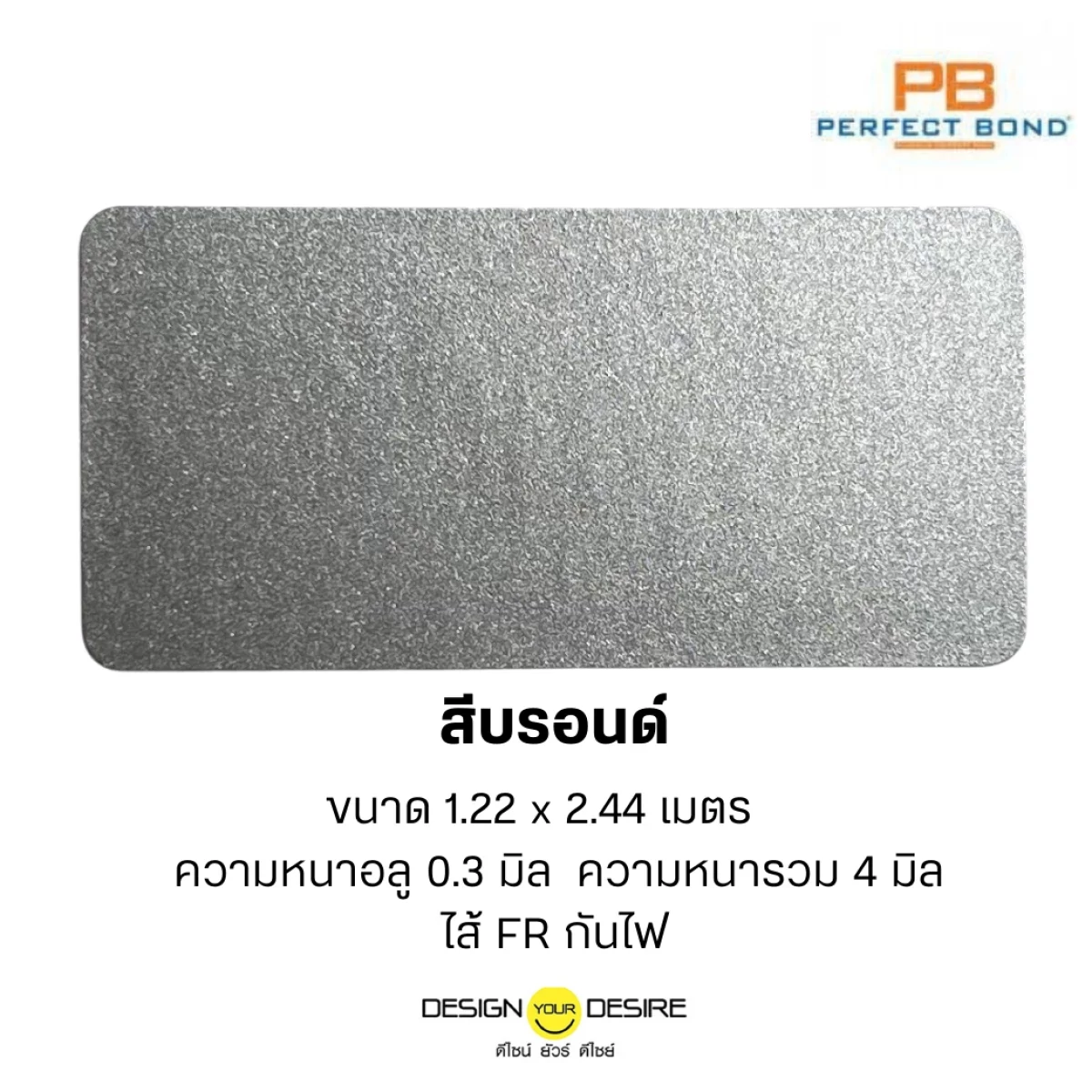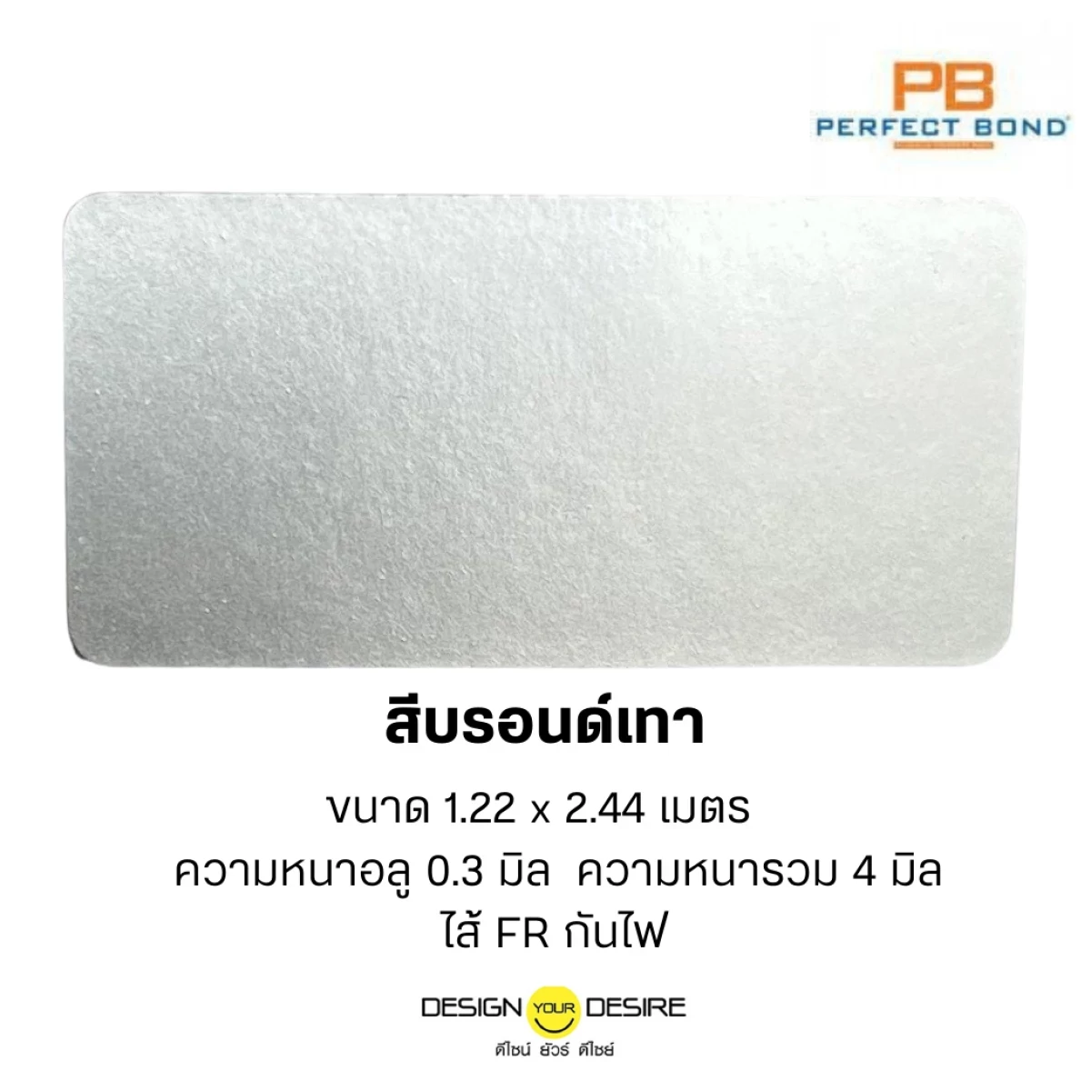 พร้อมส่ง อลูมิเนียมคอมโพสิต ยี่ห้อ พีบี เพอร์เฟคบอนด์ ไส้ FR กันไฟ (PRE ORDER) ความหนารวม 4 มิล ความหนาอลู 0.3 มิล ขนาด 1.25x2.44 เมตร