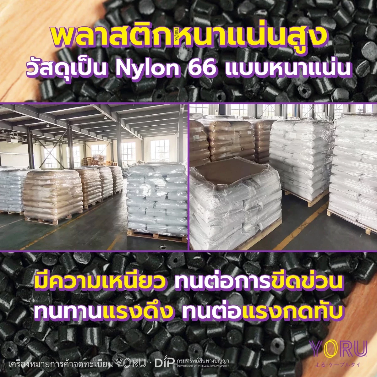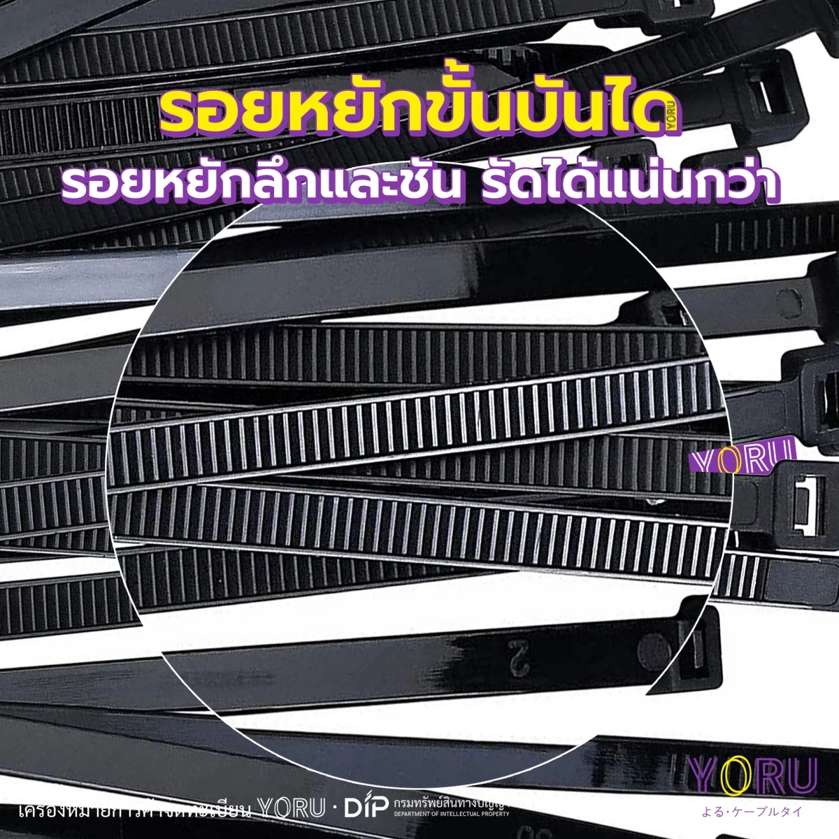 เคเบิ้ลไทร์ สีดำ ยี่ห้อ YORU ขนาด 10 นิ้ว (4.8x250 mm) บรรจุ 250 เส้น/แพ็ค ถุงใหญ่ ขายส่ง คุณภาพมาตรฐานสากล เกรดสินค้าส่งออก เคเบิลไทร์ เกรดสูงใช้ในโรงงาน เครื่องหมายการค้าจดทะเบียนโยรุ