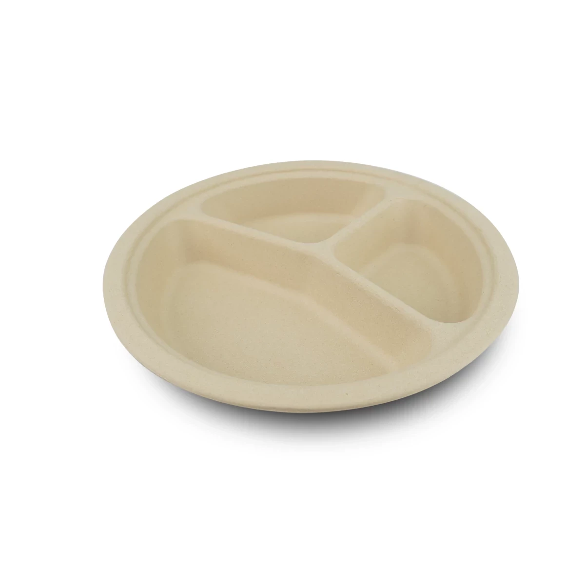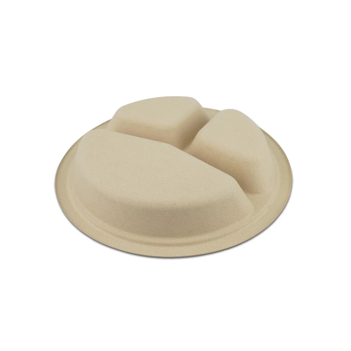 ชามข้าวเยื่อไผ่ทรงกลม 3 ช่อง ขนาด 1000 ml. (ยกลัง)