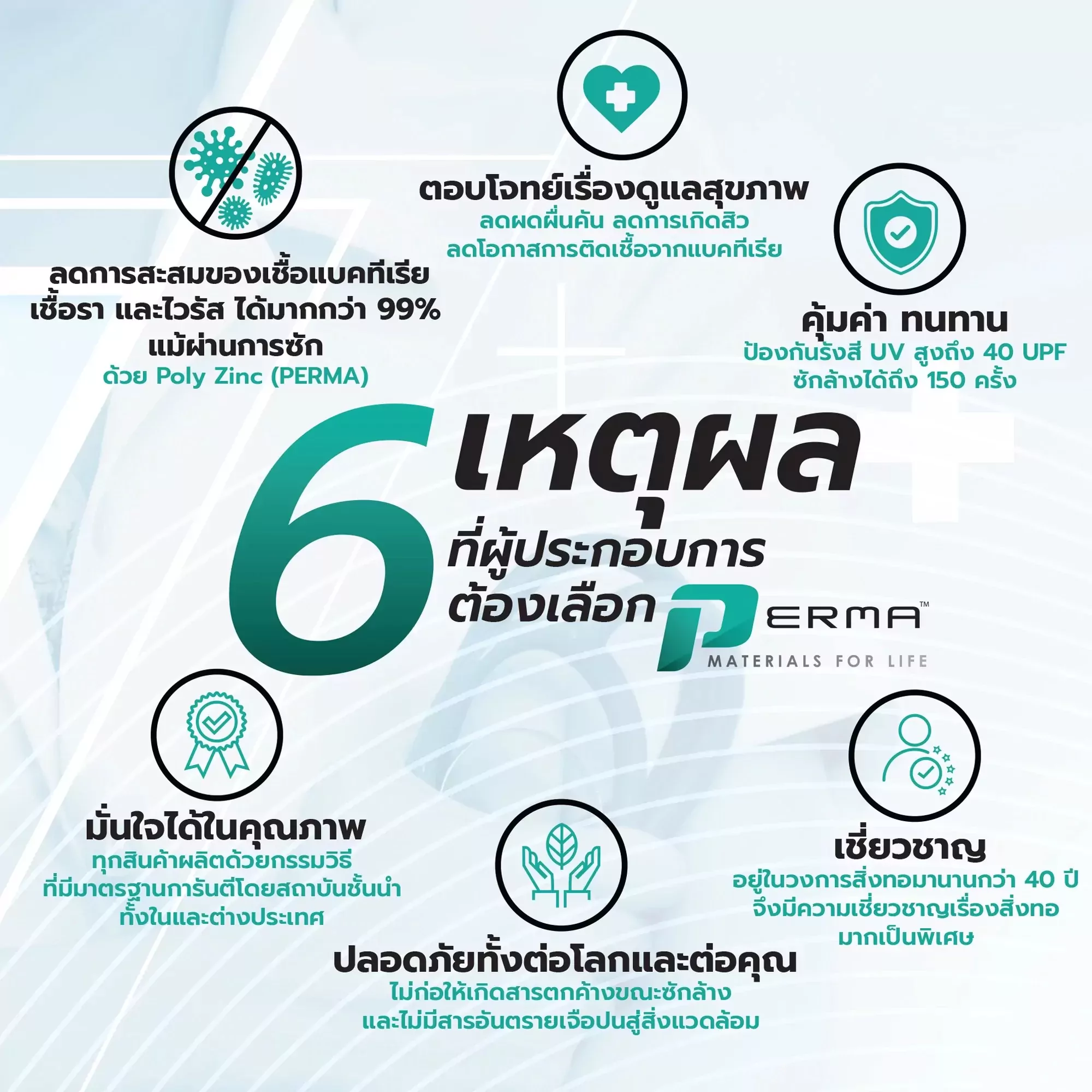 - PERMA สิ่งทอคุณภาพสูง มีความปลอดภัยต่อผู้ใช้งานและเป็นมิตรต่อสิ่งแวดล้อม