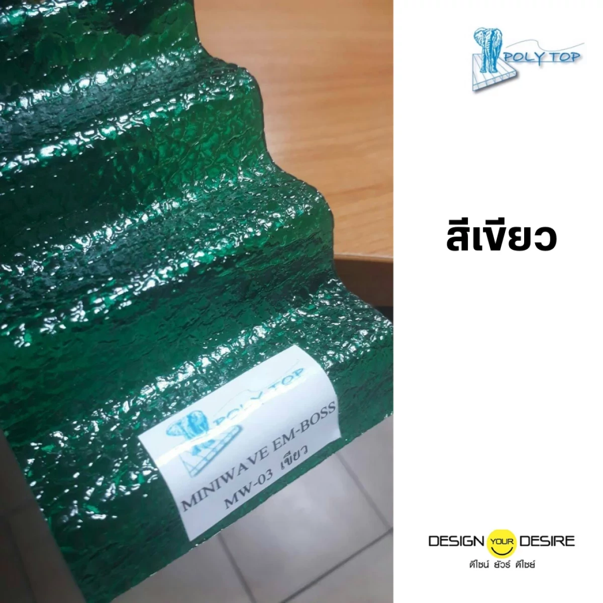 พร้อมส่ง แผ่นหลังคาโพลีคาร์บอเนต ยี่ห้อ POLY TOP แบบมินิเวฟ ผิวส้ม Miniwave Emboss ความหนา 1.5 มิล ขนาด 1.05x6 เมตร