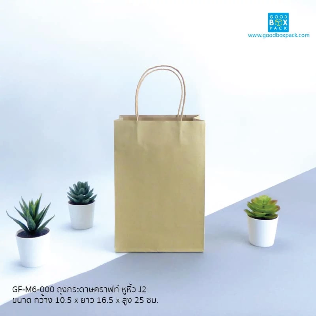 พร้อมส่ง ถุงกระดาษคราฟท์ หูหิ้ว J2 ขนาด กว้าง 10.5 x ยาว 16.5 x สูง 25 ซม แพ็คละ 25 ใบ ลังละ 500 ใบ