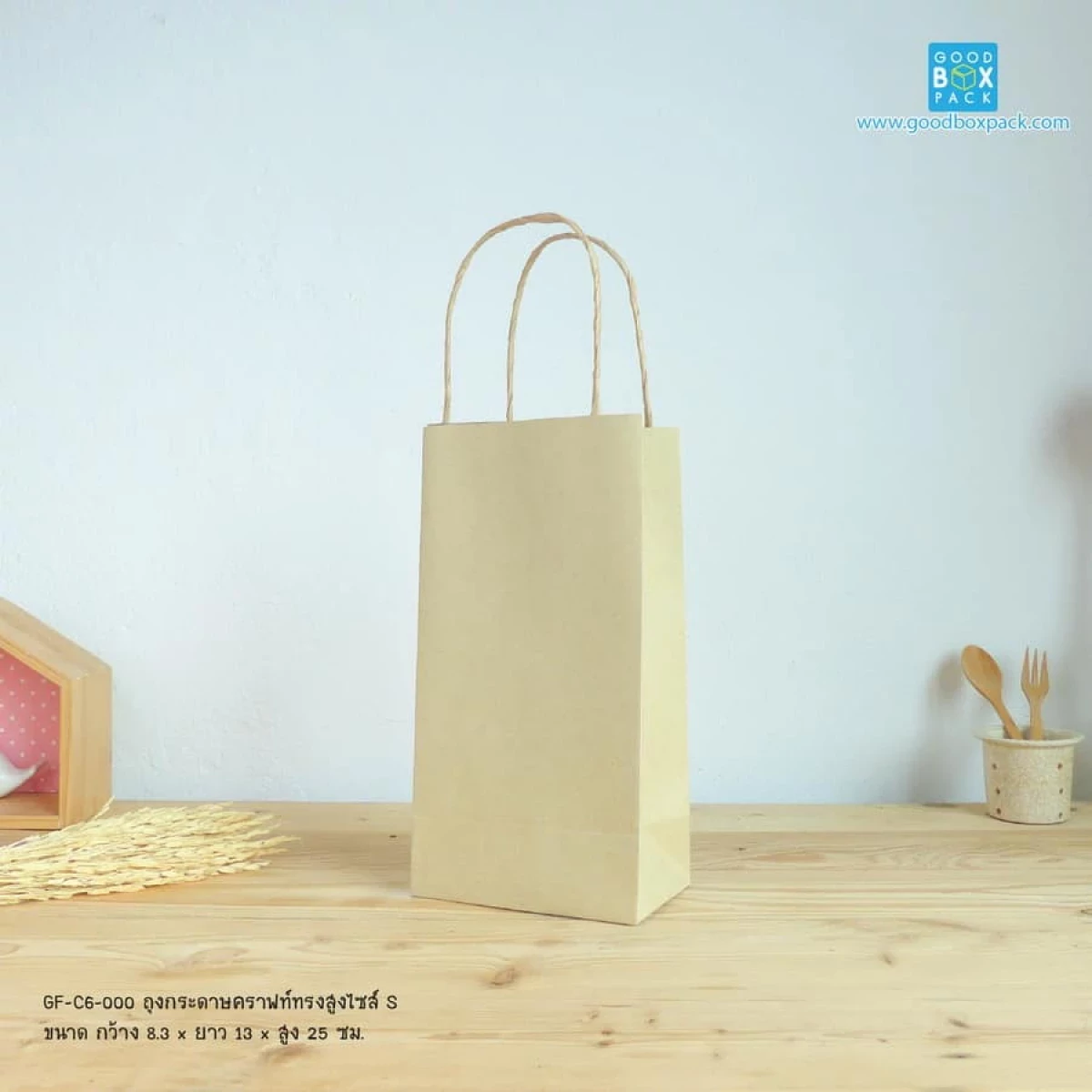 ถุงกระดาษคราฟท์ทรงสูงไซส์ S แพ็คละ 50 ใบ ลังละ 1000 ใบ ขนาด กว้าง 8.3 x ยาว 13 x สูง 25 ซม.