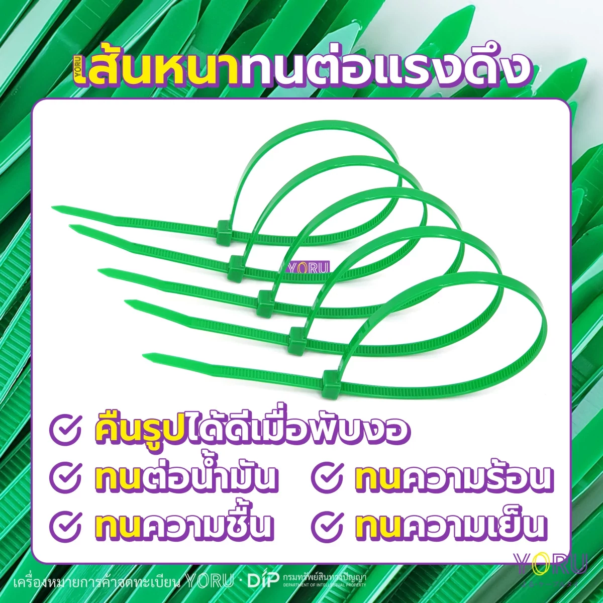 เคเบิ้ลไทร์ YORU ขนาดยาว 6 นิ้ว (3.6x150 mm) สีเขียว ถุงใหญ่ 500 เส้น/แพ็ค ราคาส่ง