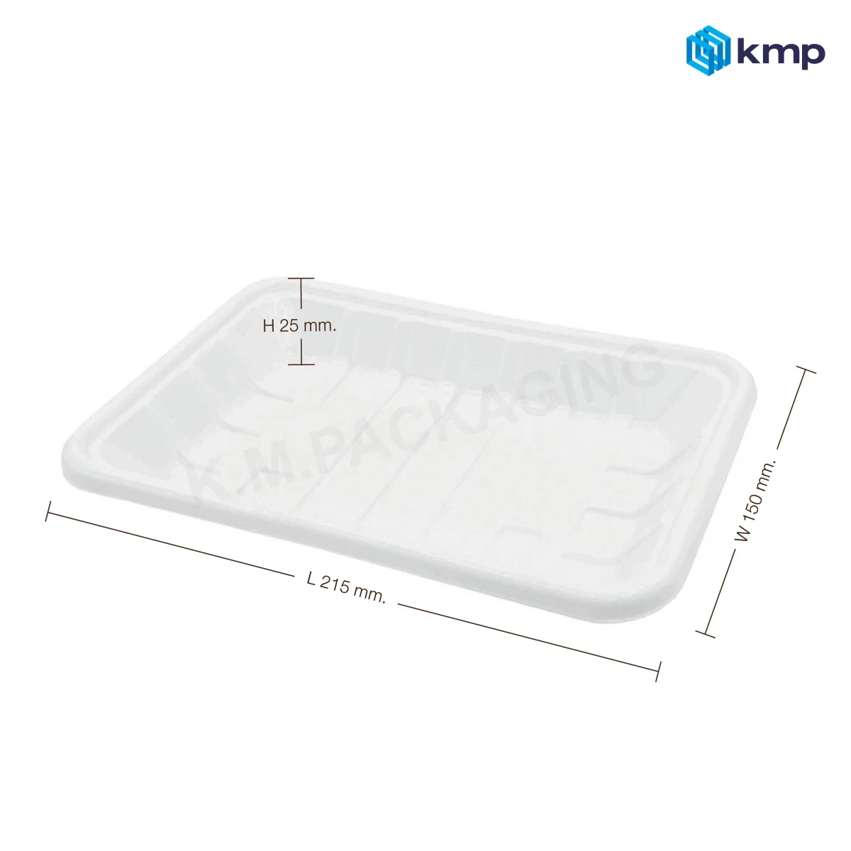 ถาดพลาสติก ย่อยสลายได้ (สีขาว) ขนาด 215x150x25 มม.