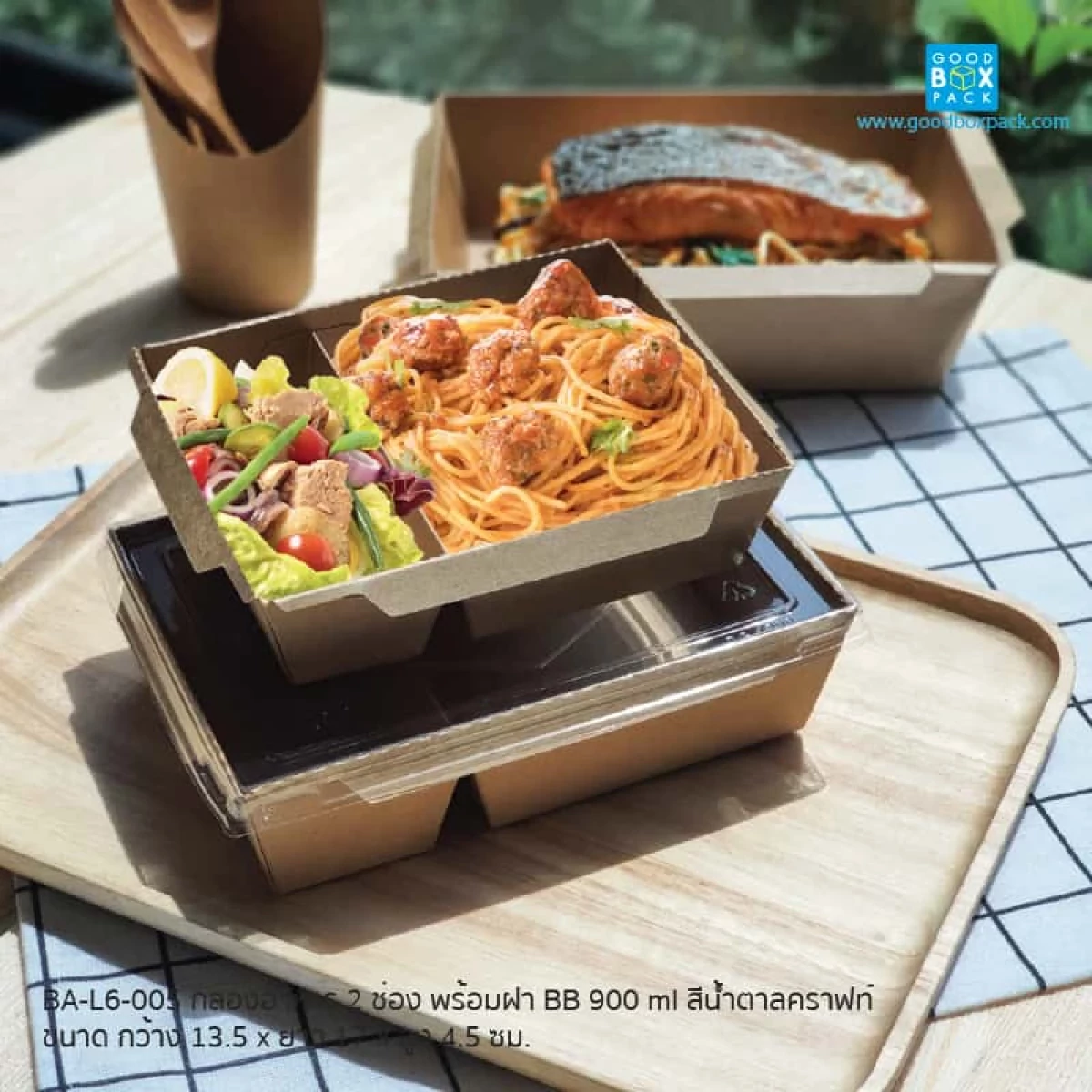 กล่องอาหารคราฟท์ 2 ช่อง พร้อมฝา 900 มล.แพ็คละ 50 ชุด ลังละ 200 ชุด ขนาด กว้าง 13.5 x ยาว 17 x สูง 4.5 ซม.