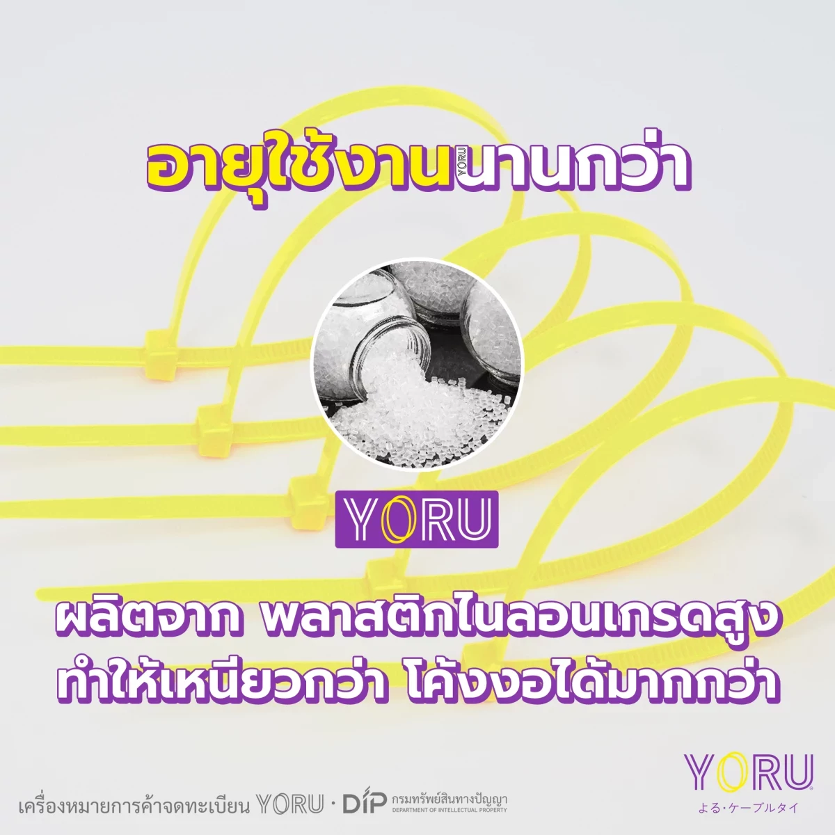 เคเบิ้ลไทร์ สีเหลือง แบรนด์ YORU ยาว 4 นิ้ว (2.5x100 mm) บรรจุ 1000 เส้น/แพ็ค ซองใหญ่ ราคาส่ง คุณภาพมาตรฐานสากล เกรดสินค้าส่งออก เคเบิลไทร์ เกรดสูงใช้ในโรงงาน เครื่องหมายการค้าจดทะเบียนโยรุ